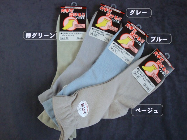 男片手ではけるソックス_24~26cm。お年寄りの方、介護用などにおすすめします。はきやすい!!ぬぎやすい!! [綿96% ポリウレタン2% その他2%] 肌に触れる部分は綿100%です!!