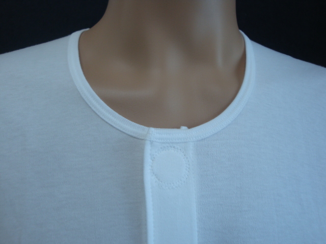 211AM_211AL_紳士_7分袖前開ワンタッチシャツ_白_サイズM・L