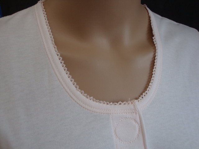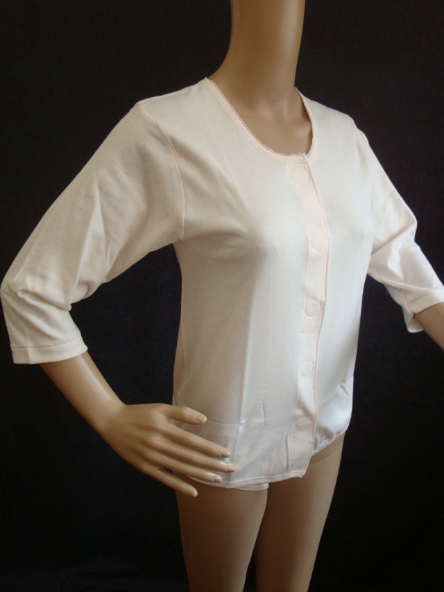 222A_婦人_7分袖前開ワンタッチ_白・ピーチ_サイズM・L